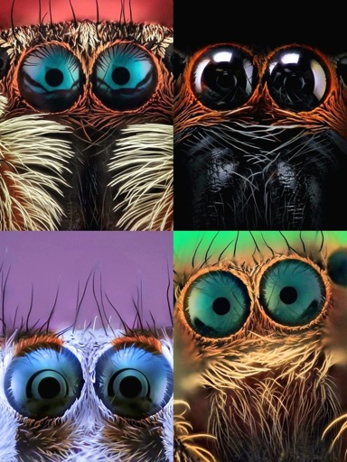 I think what looks like pupils might be reflection of the camera in the eyes of the spiders