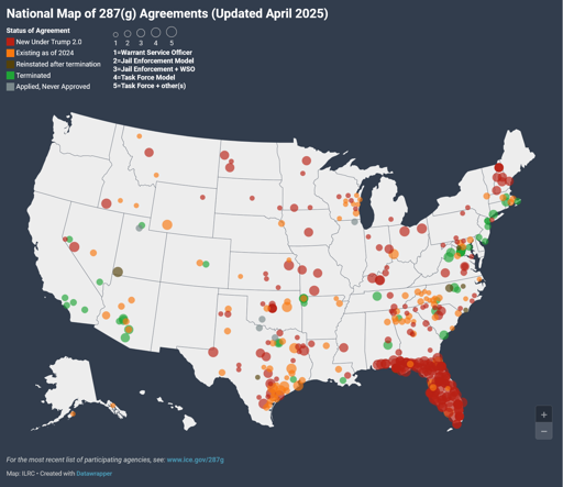 It is against Oregon law for state and local law enforcement or public agencies (state and local government offices) in the state of Oregon to participate directly or indirectly in immigration enforcement without a judicial warrant.