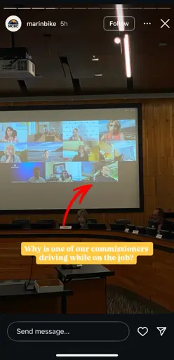 During the public hearing, commissioner Karl Hasz was spotted driving his car