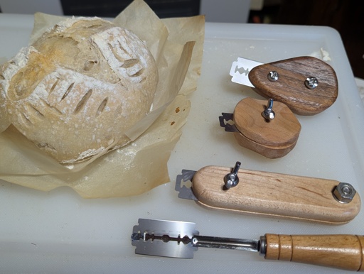The device in front is a pretty standard tool for slashing dough for baking. I did not like it at all.